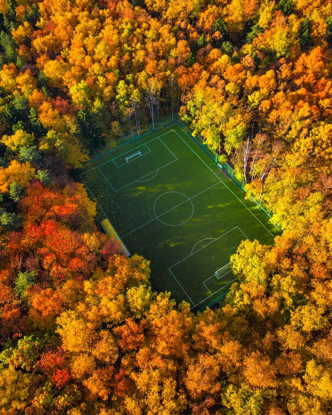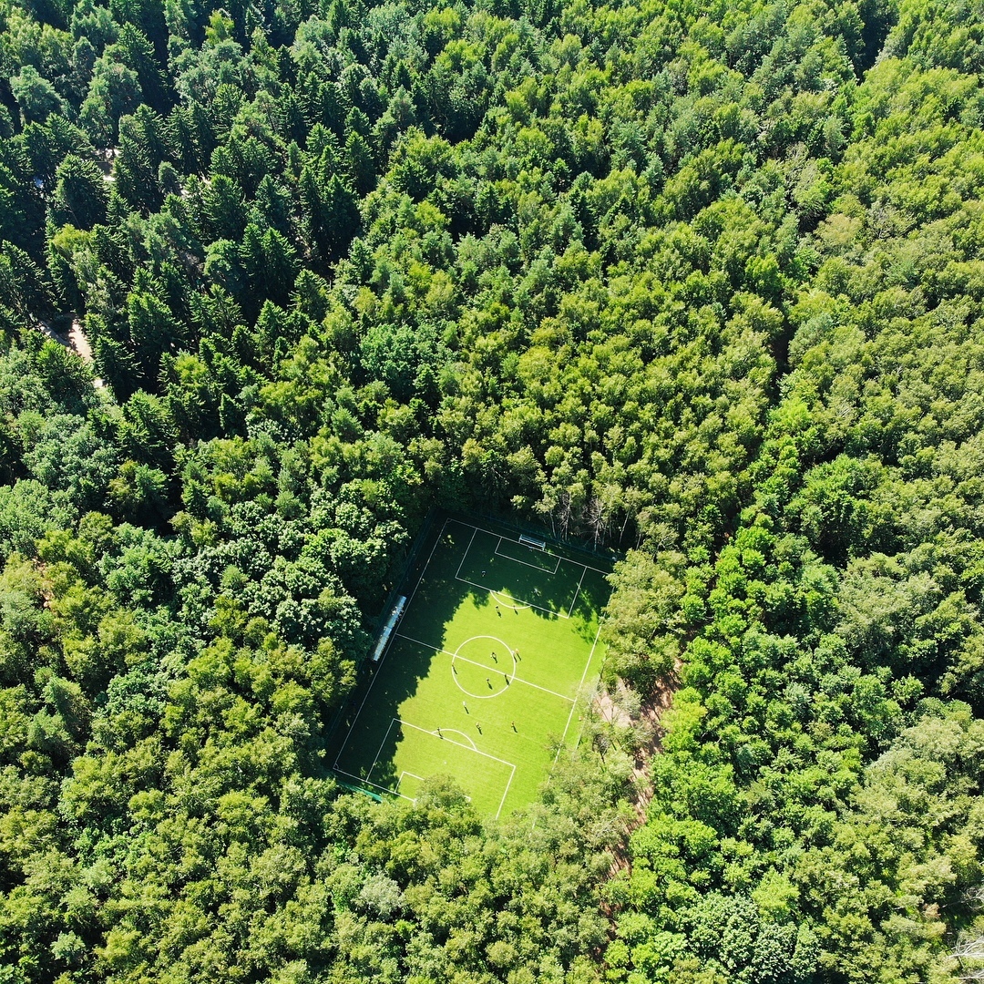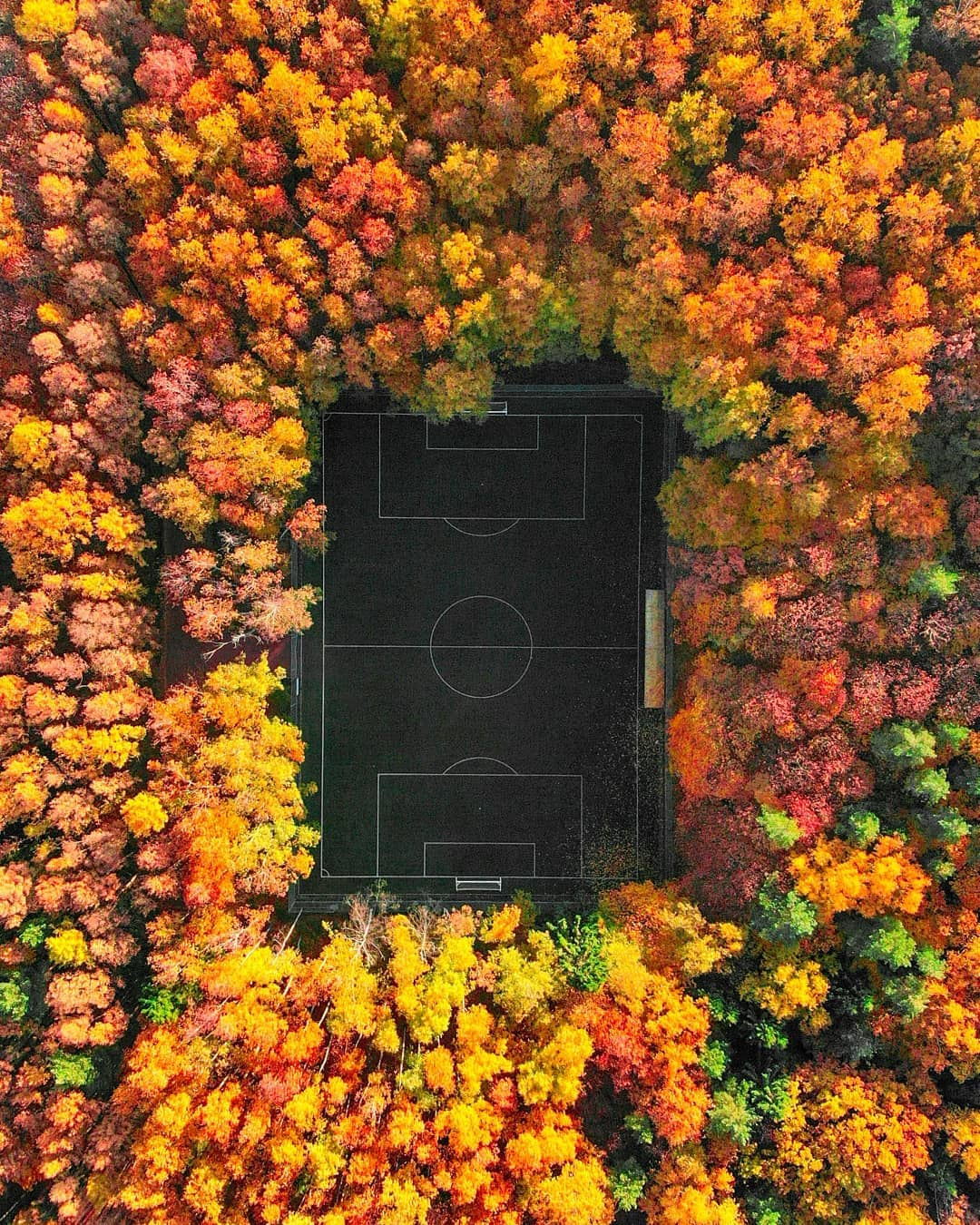 Футбольное поле в Мещерском парке первый раз привлекло внимание жителей столицы в далеком 2016 году. Именно тогда, кто-то сделал фотографию с дрона и разместил ее в интернете. С тех пор, вот уже почти 10 лет, каждый уважающий себя владелец дрона обязан сделать новое видео и фотографию спортивной площадки.