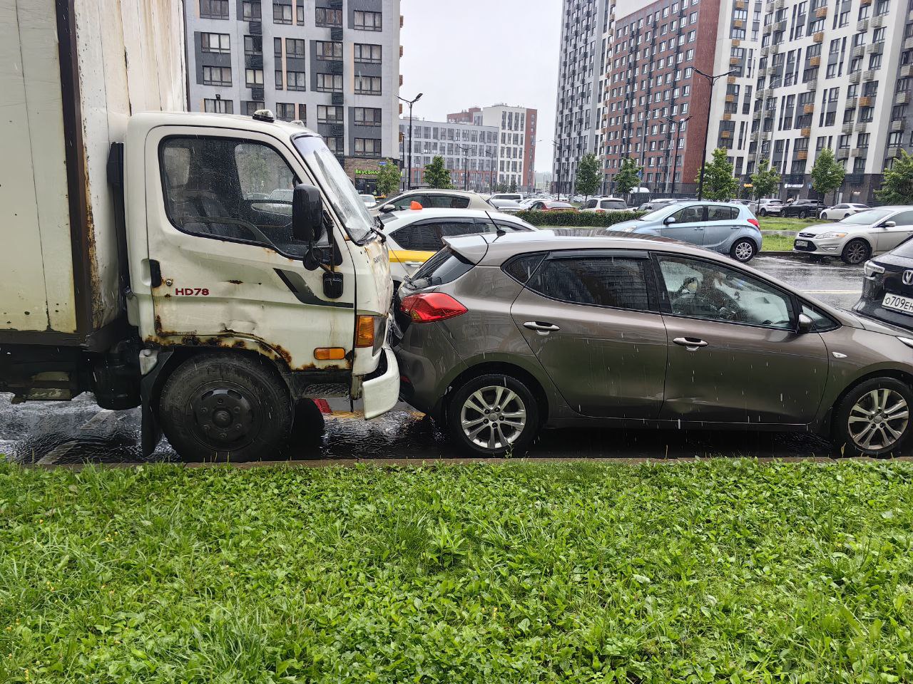 В аварии пострадало примерно четыре автомобиля. Фотографиями с места, когда уже было светло и мокро, поделился Дмитрий.