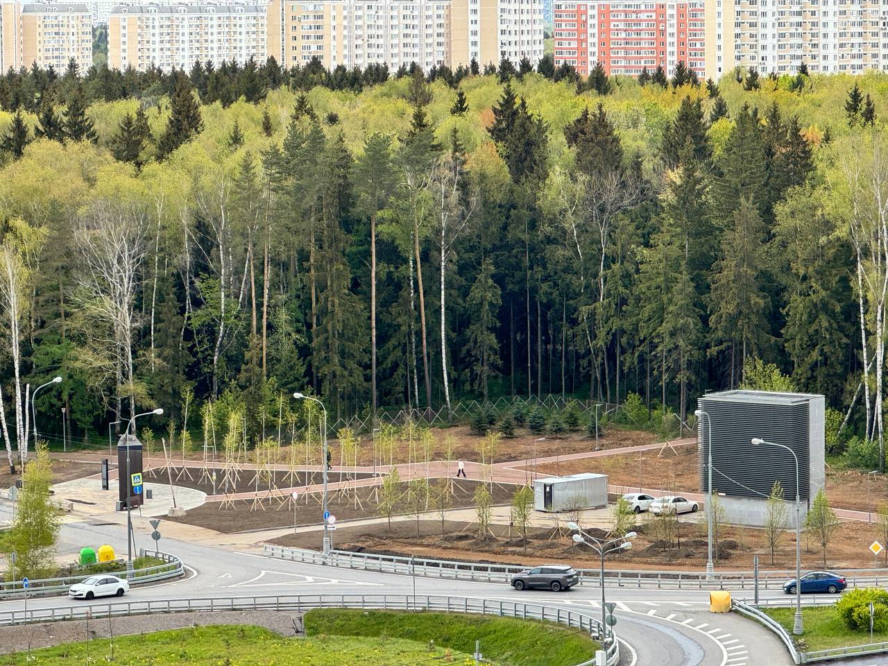 Если это так, то на данный объем работ потребовалось почти два года, именно столько прошло после открытия метро до аэропорта Внуково. Снимок от мая 2025 где высадили новые деревья. Здесь же видны новые дорожки.