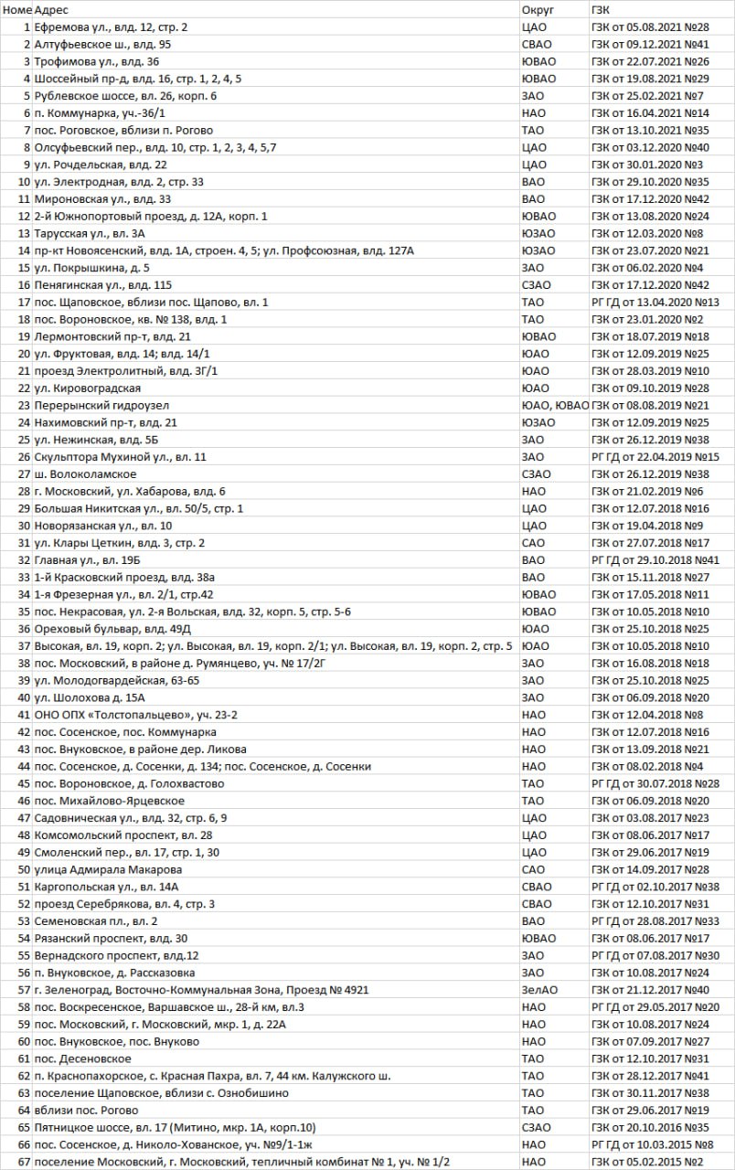 В частности, в районе Ново-Переделкино, ул. Шолохова д. 15А, ГЗК от 06.09.2018 №20, планировалось построить новый ТЦ на месте одноэтажного здания. А в Московском, (г. Московский, тепличный комбинат № 1, уч. № 1/2 ГЗК от 05.02.2015 №2) почти стартанули со стройкой нового мкр. Видимо пока не судьба.
