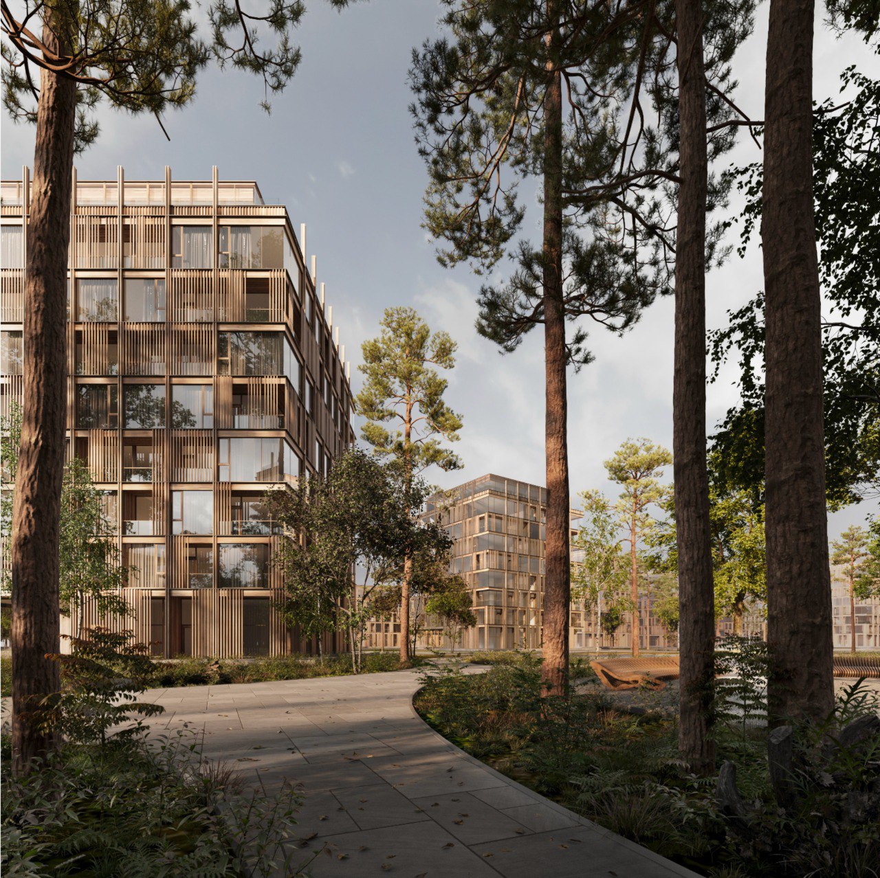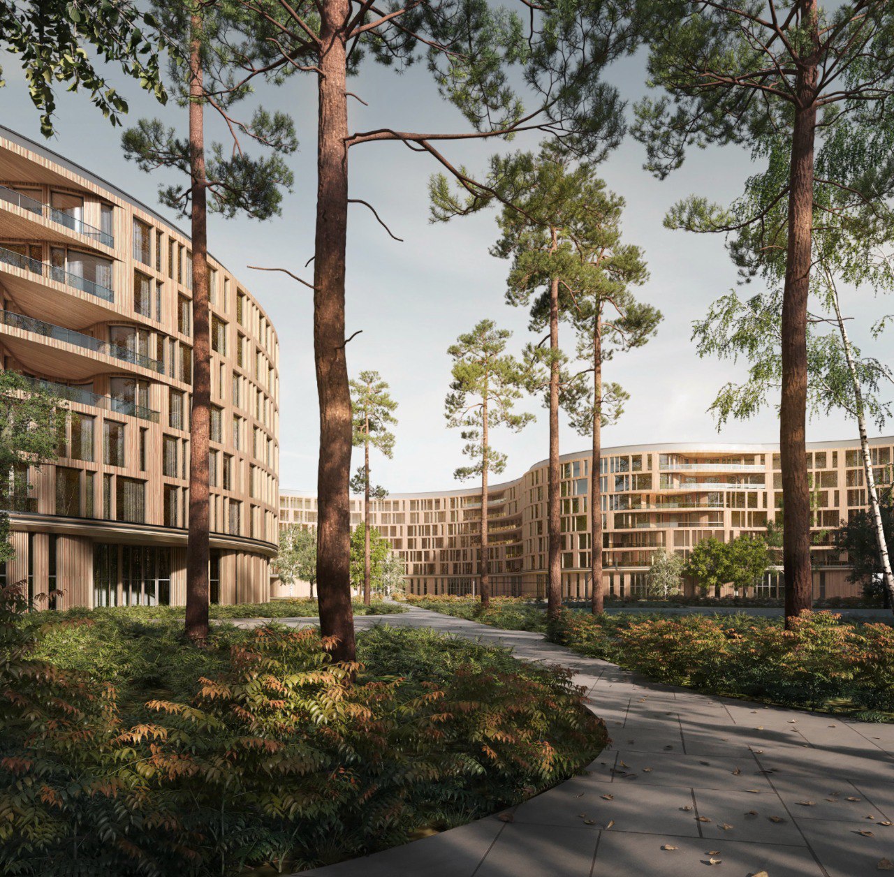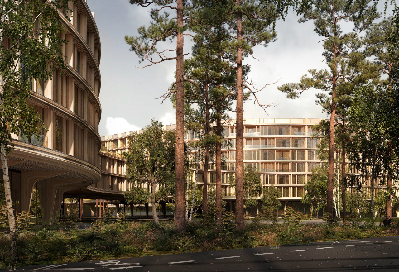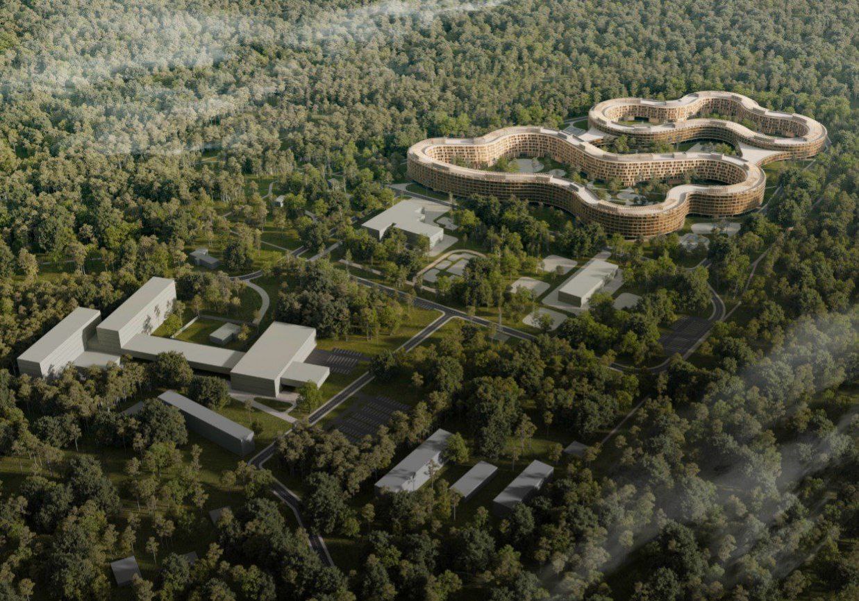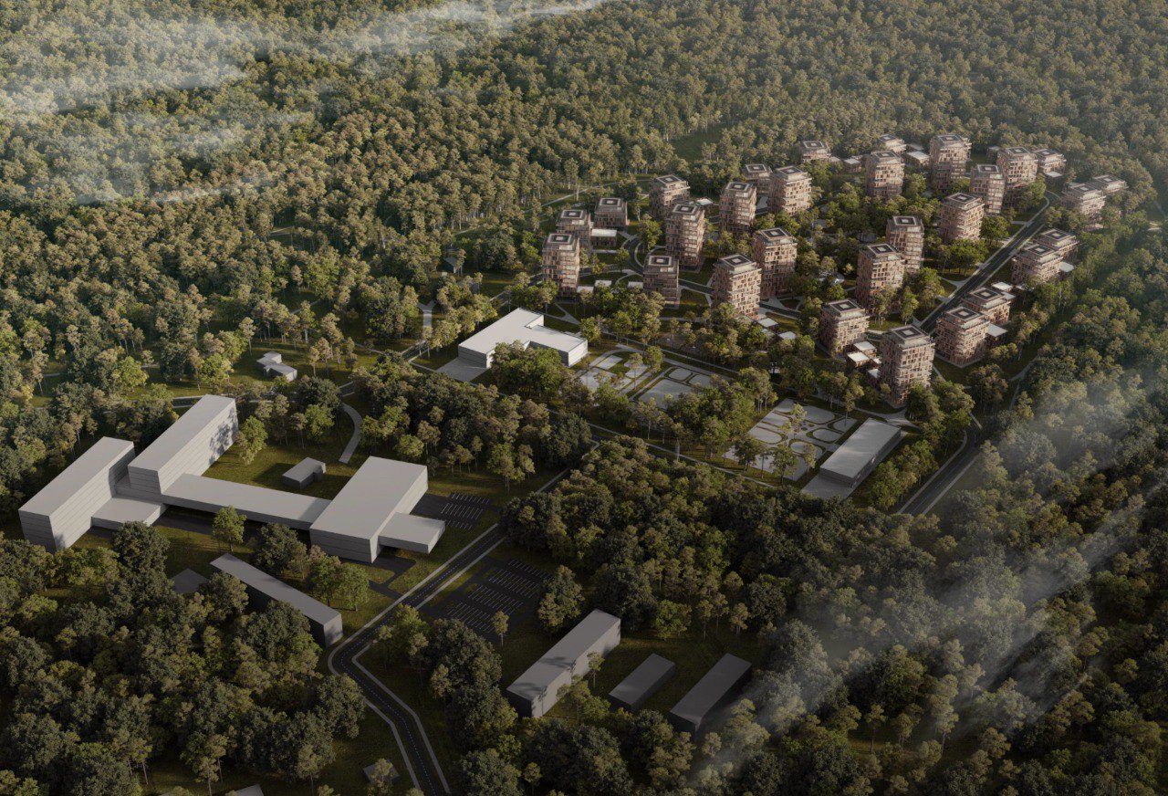 Одно из архитектурных бюро получило заказ и создало два концептуальных варианта для размещения зданий на 78 гектарах земли в окружении Мещерского парка.