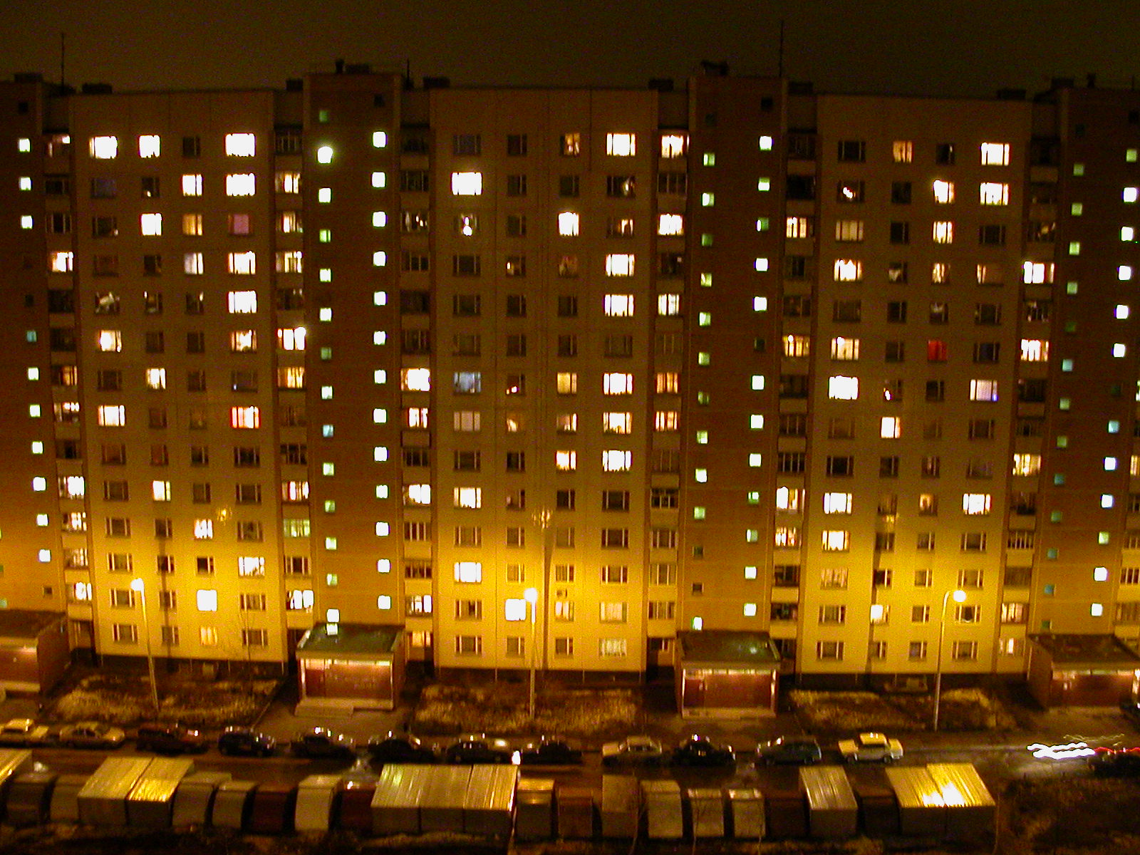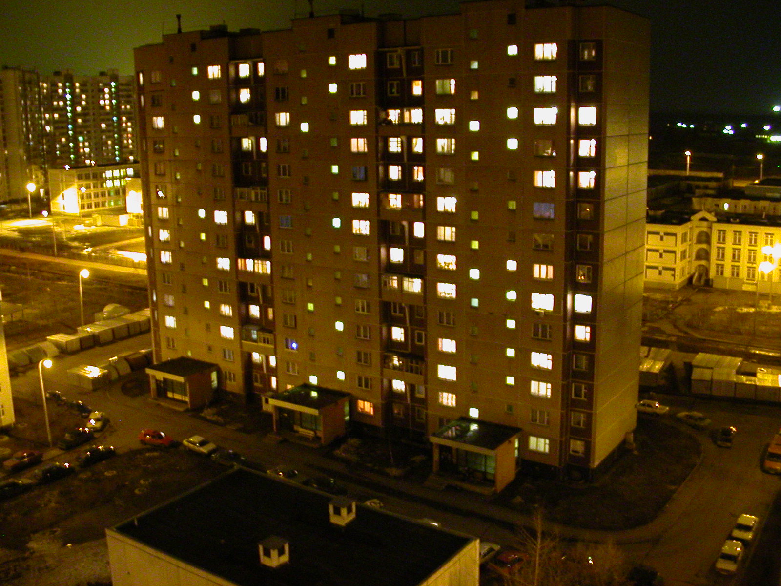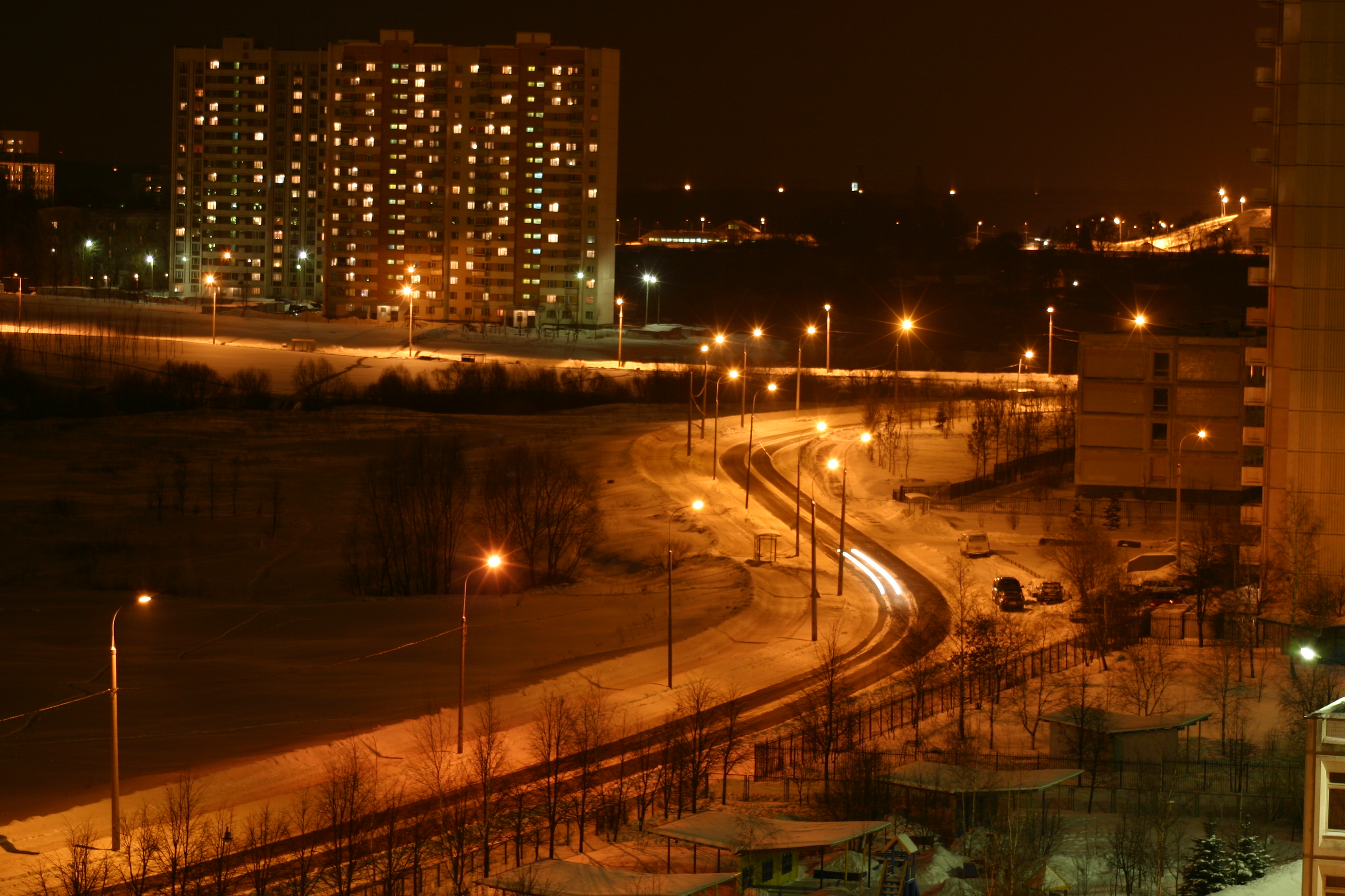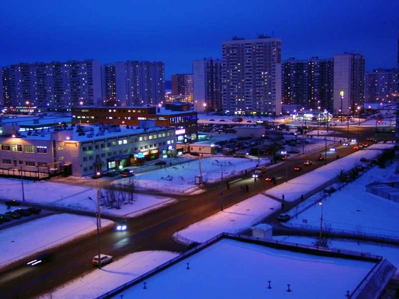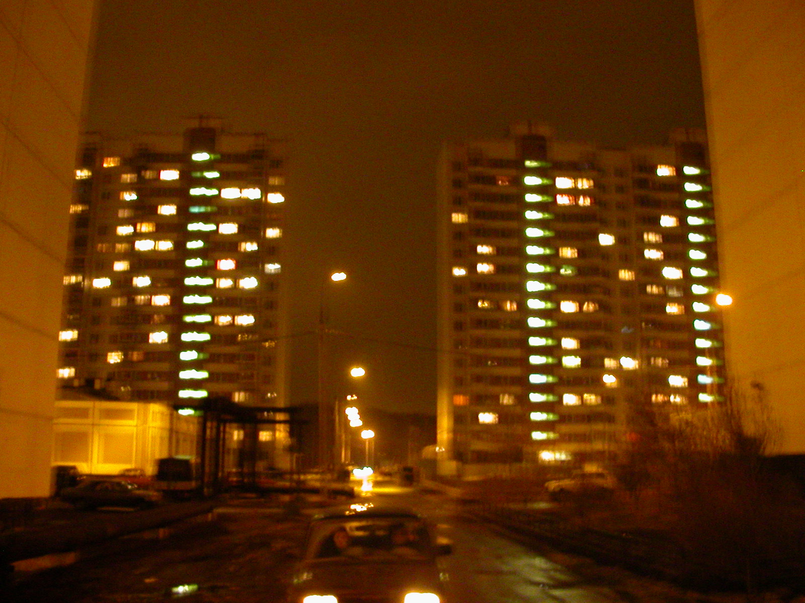 С ночным видом в сторону Солнцево. Приречная улица и холодольник.