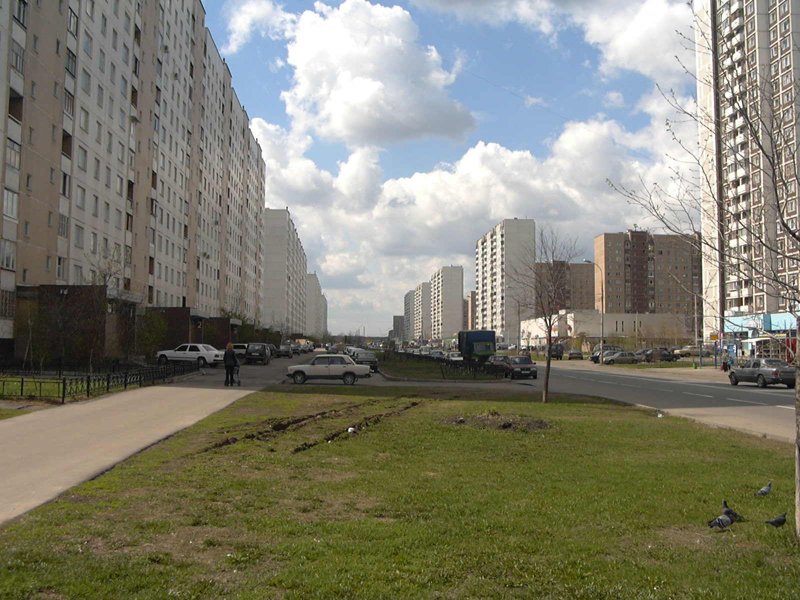 Улица Авиторов в Солнцево. Год неизвестен, как и время года. Похоже что ранняя весна или начало зимы.