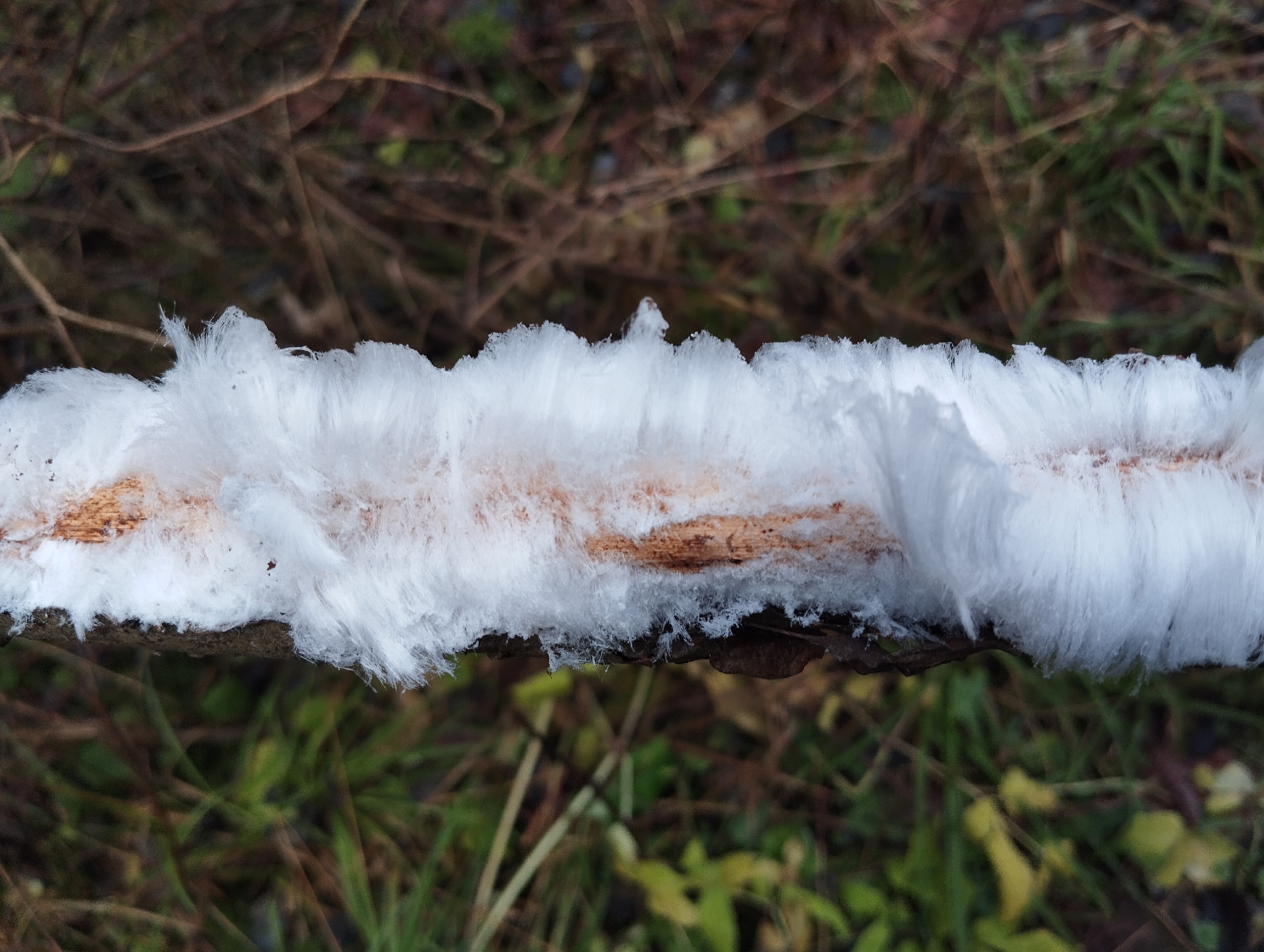 Редкое природное явление "ледяные волосы" было замечено 20 ноября в парке 3-го микрорайона города Московский в районе Филимонковский.