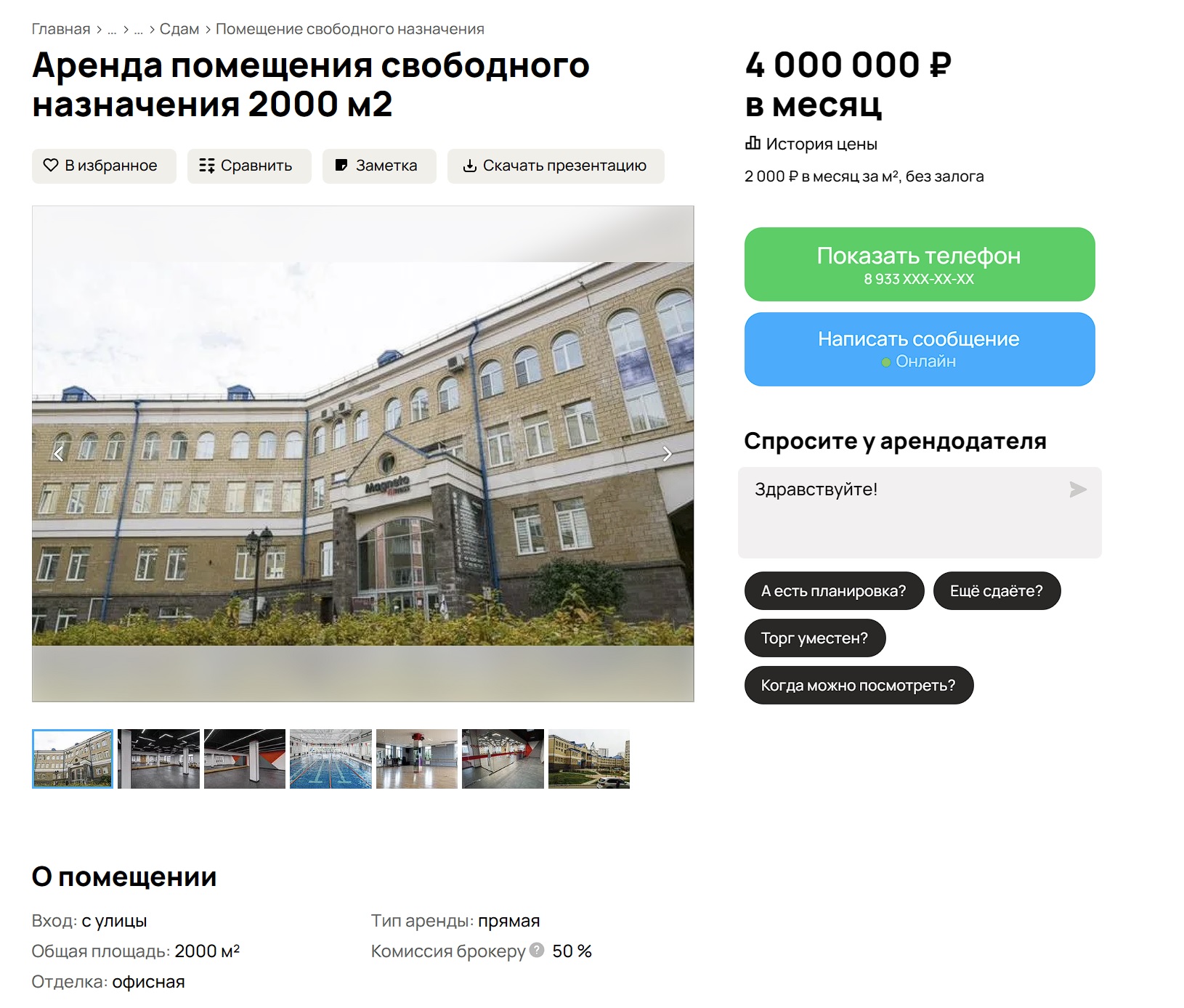 И это не ошибка. В описании четко дали понять, что именно площади фитнес-клуба сдаются.