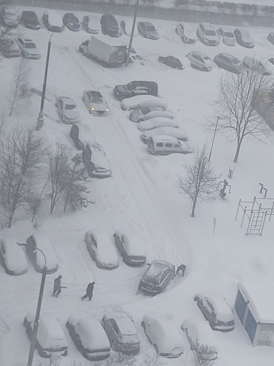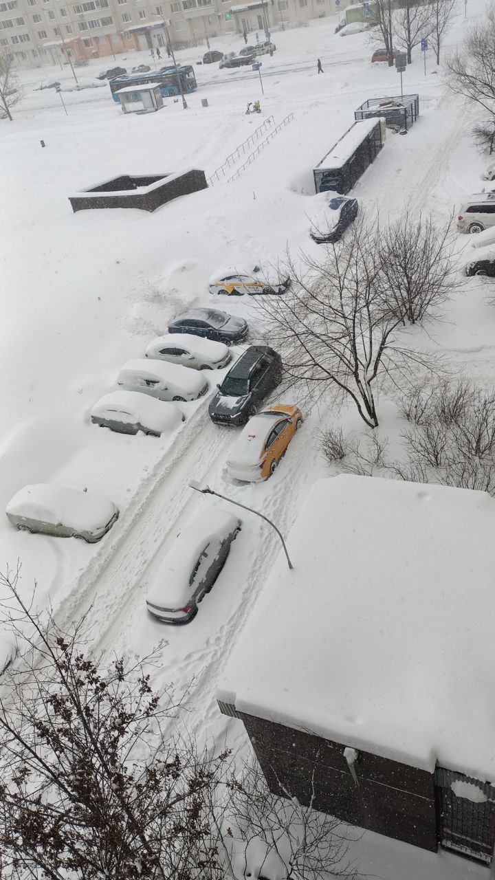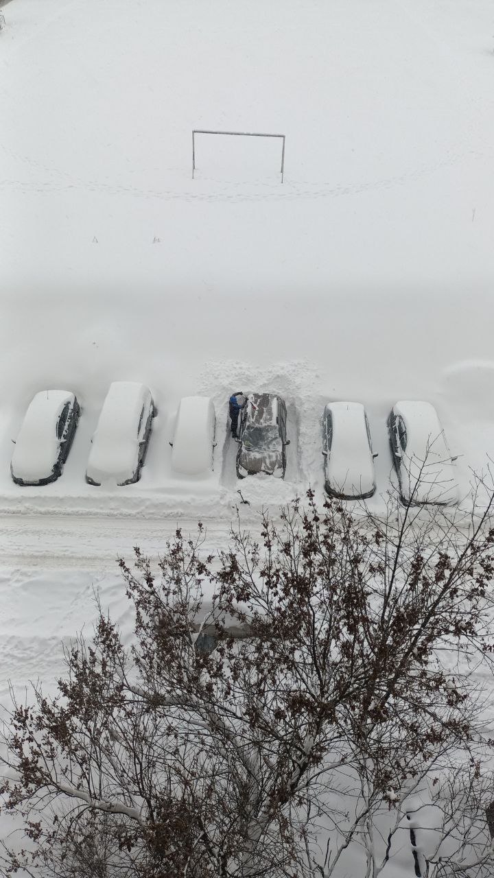 Ситуация с парковой как и везде. Выехать без лопаты от подъезда не возможно. Фото от Мари.